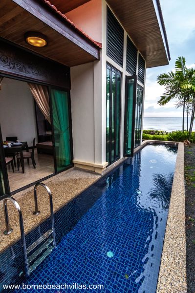 Pool Villas come with two or three bedrooms. All villas feature their own private backyard pavilion with sea view.