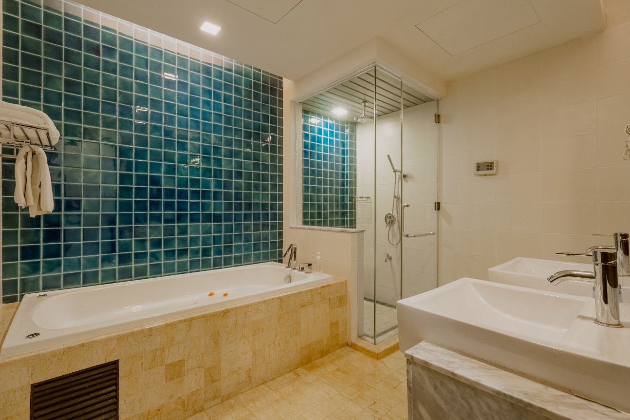 Spa suites offer spacious, comfortable, and furnished bedrooms, as well as a living room, dining area, and a fully equipped kitchen. Each unit comes with a bathroom and an en-suite bathroom, which features a jacuzzi bathtub.